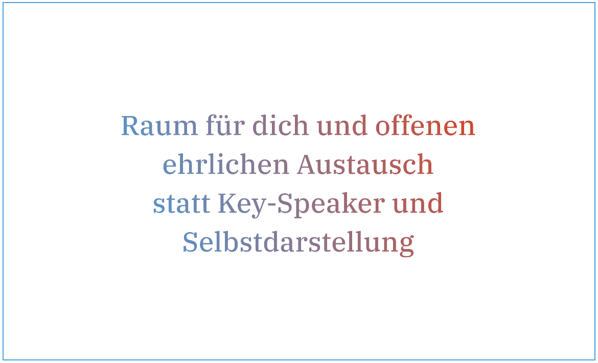 Echte Gespräche auf Augenhöhe. Nicht performen, sondern zuhören, einbringen, weiterdenken.