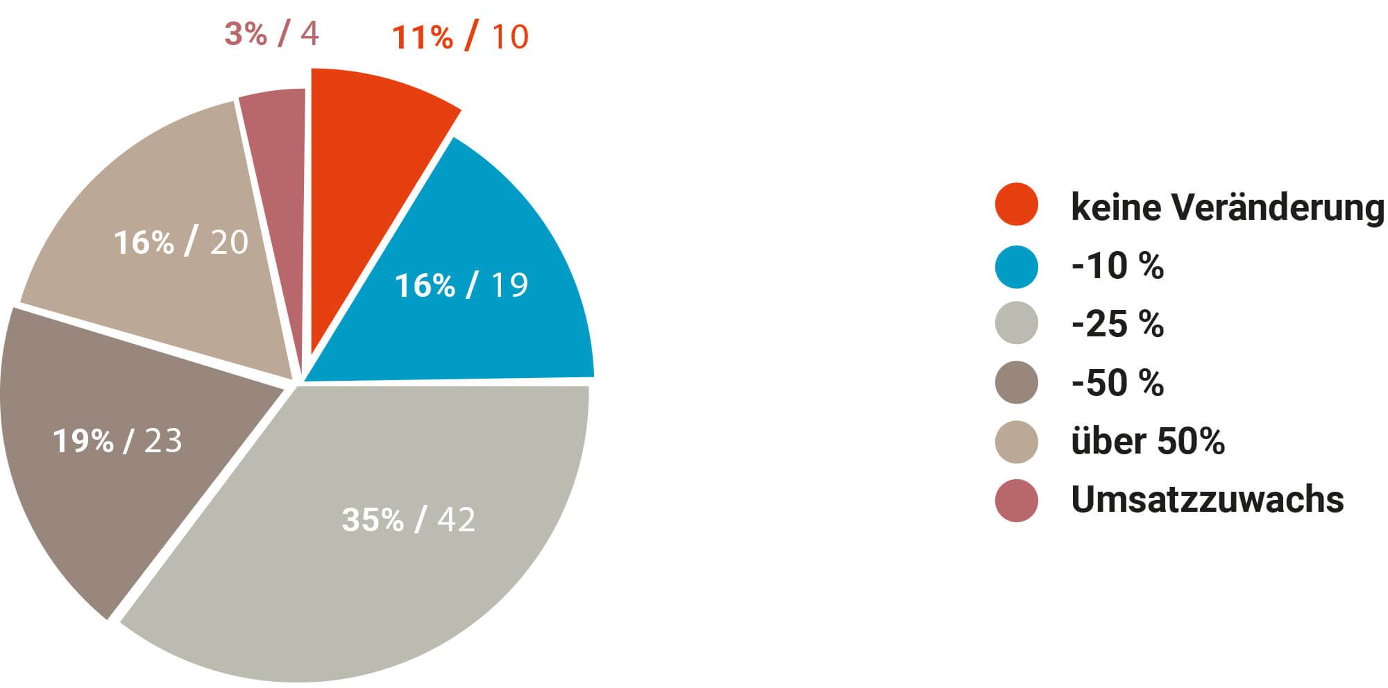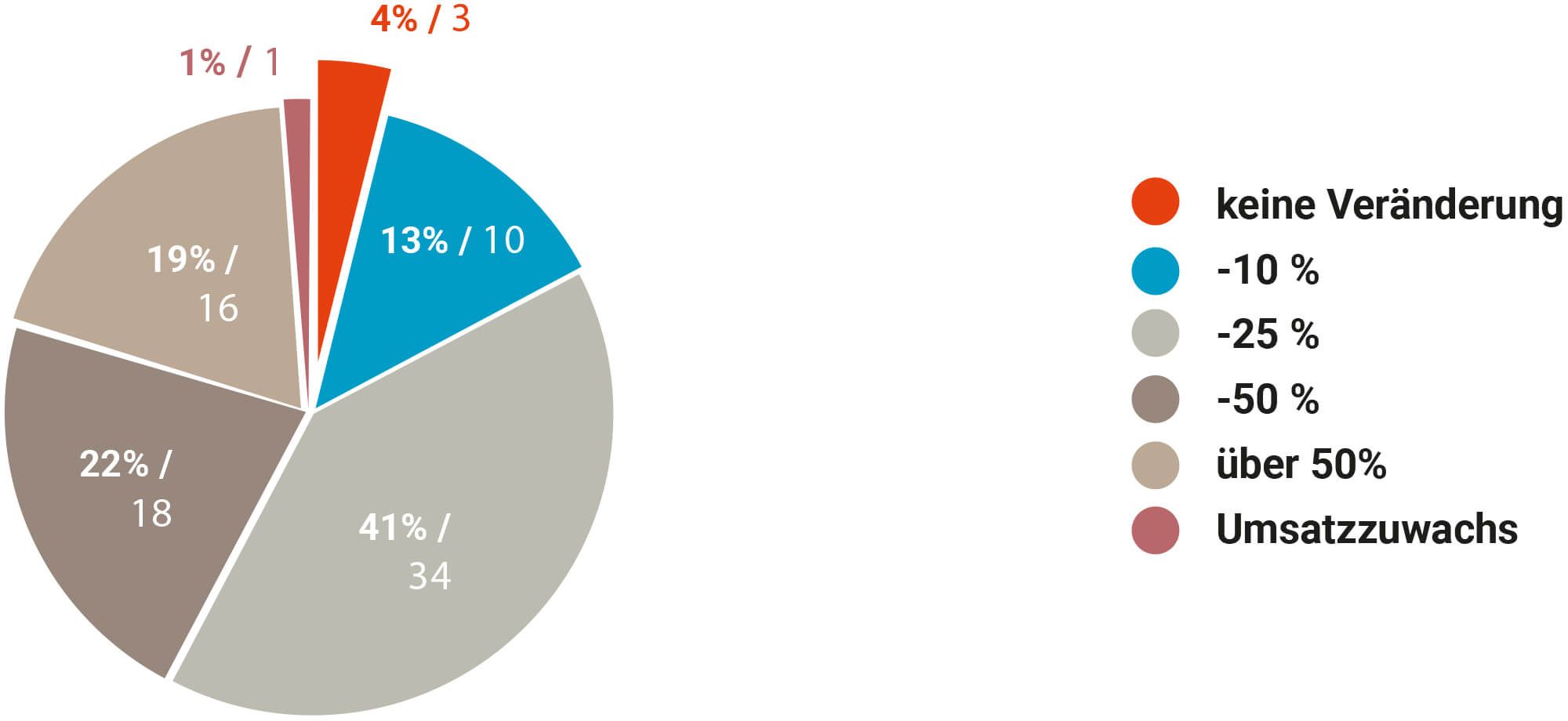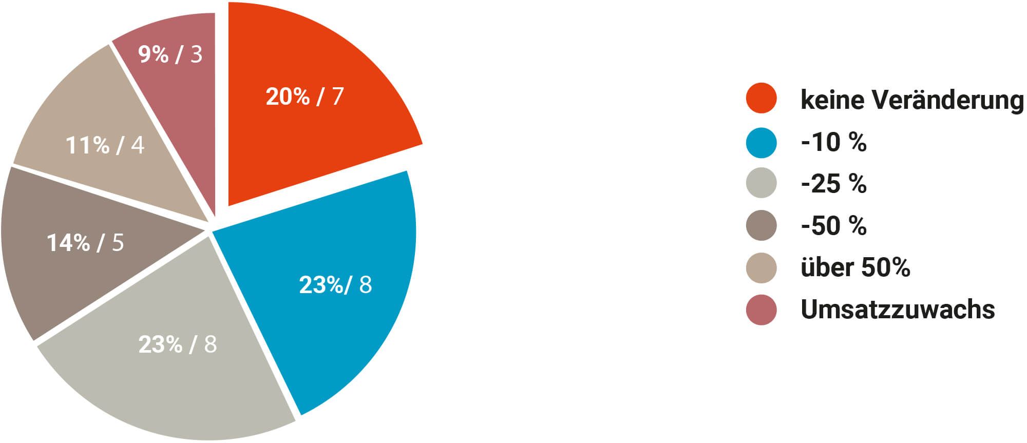 __  Ganz anders sieht das bei allen anderen Agenturen (ohne Digitalagenturen) aus. Lediglich 4% sind bisher verschont geblieben, 13% haben einen Umsatzeinbruch von -10% und bereits 41% von -25%.