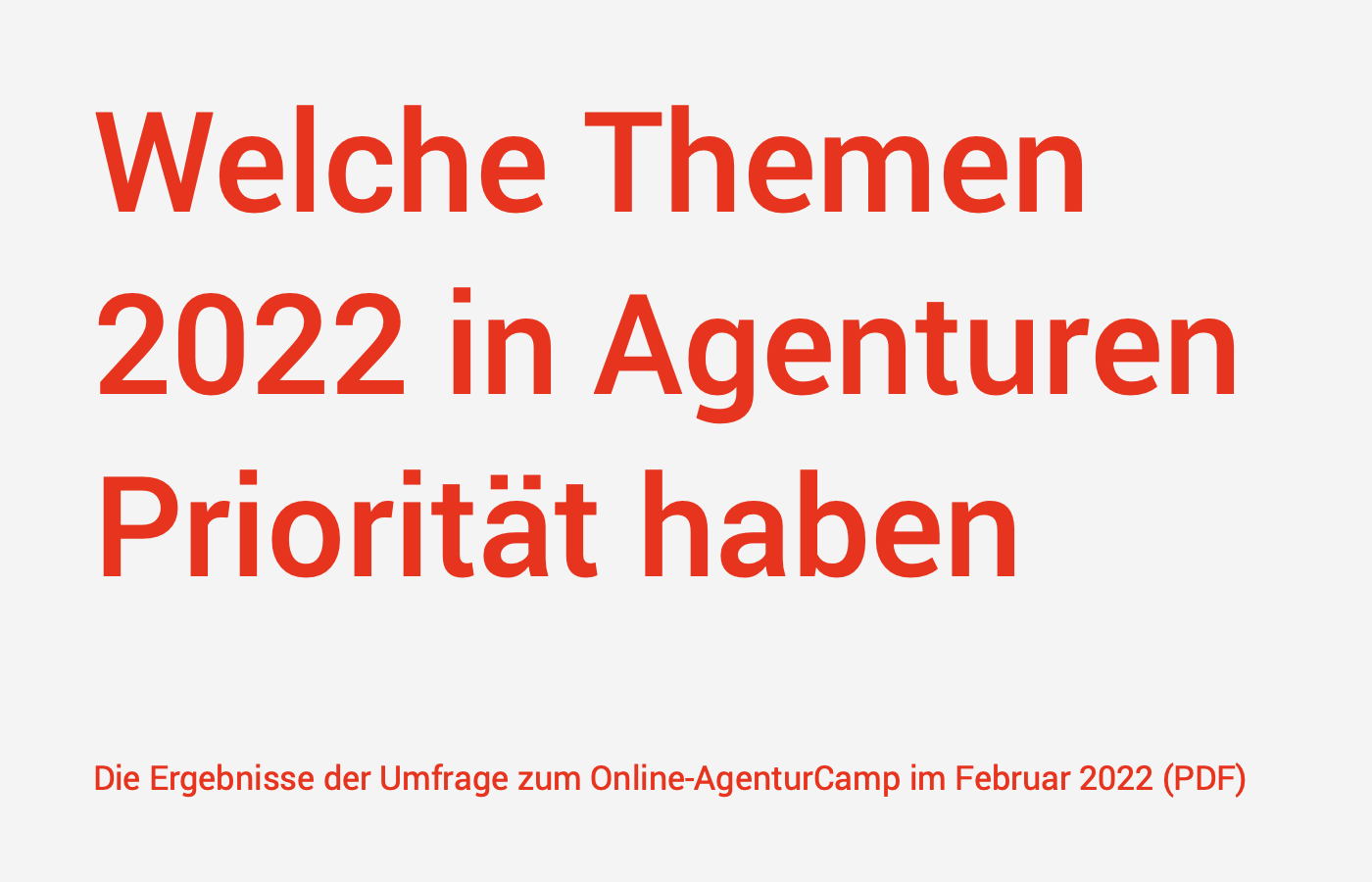 Es geht um dich und dein Team beim ersten AgenturCamp in Wien. Was macht deine Agentur zu einem Ort, der die Menschen anzieht, begeistert und bindet? Wie wollt ihr euer Agenturleben in Zukunft gestalten? Was hat sich bei euch durch die Pandemie und die weiteren Krisen verändert? Vor welchen Herausforderungen steht ihr?